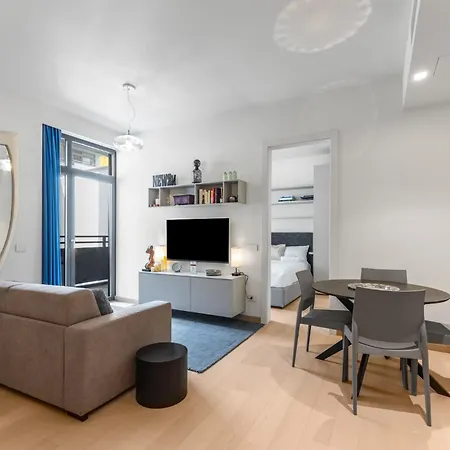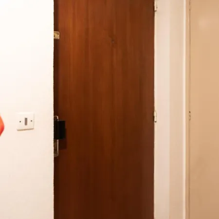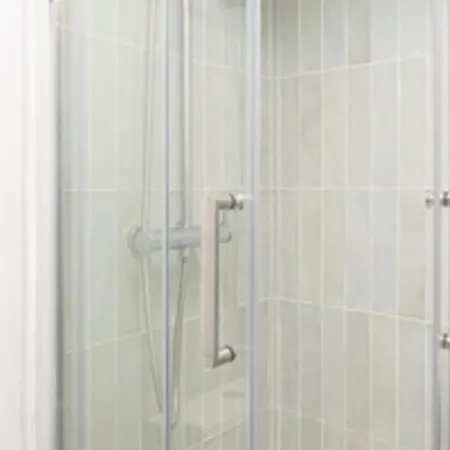 The apartment features a bathroom with hairdryers and towels.